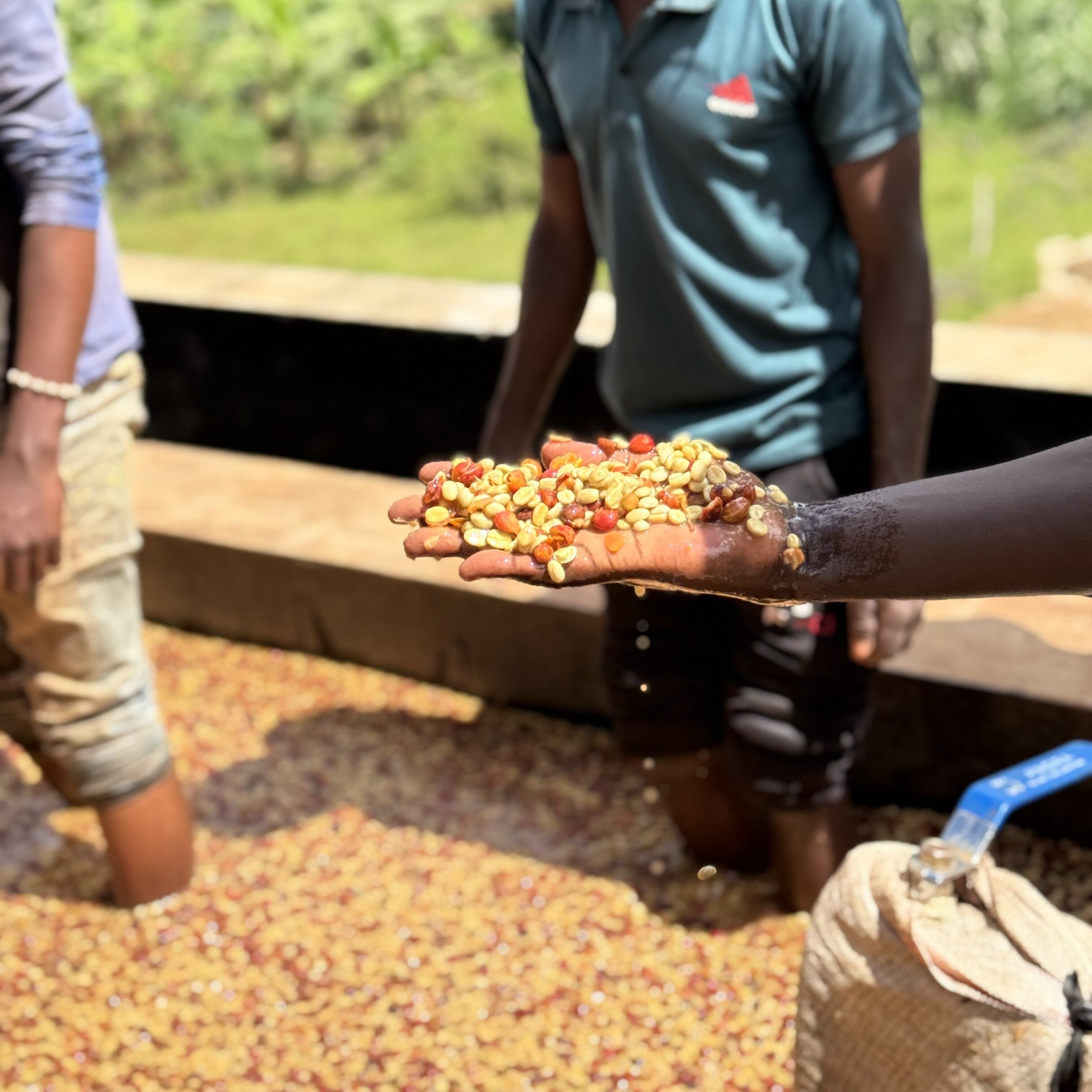 ドライ8時間・ウェット8時間の二段階発酵のあと、カナルでの水洗と比重による4段階グレーディングが行われます。