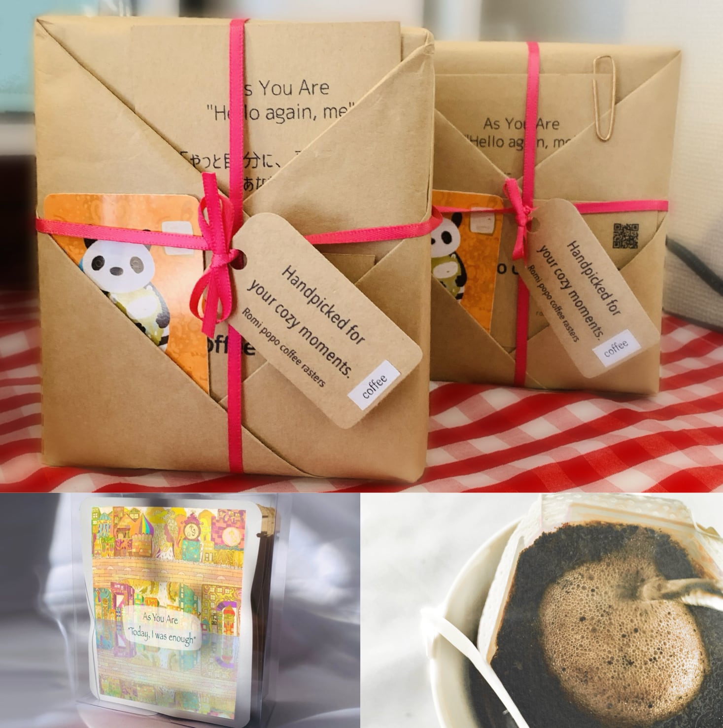 大切な誰かのための贈り物|ハンドクラフトギフト|ドリップバッグ4個入り+ポストカード1枚付き |As You Are "Today, I was enough" 〜今日の私も、悪くなかったな〜